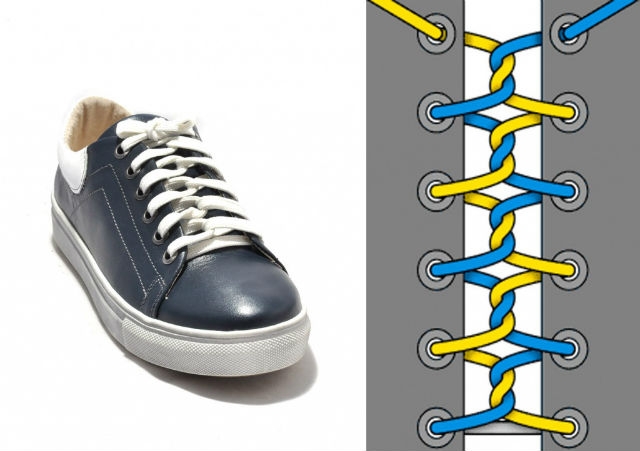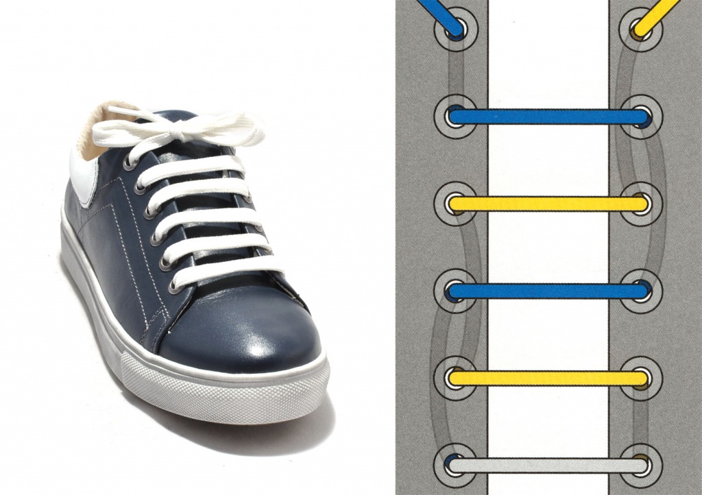 Если вы шнуруете кеды или кроссовки таким способом, они приобретут уникальный вид. Завязки будут надежнее держаться, а обувь лучше фиксироваться на ноге. Однако этот метод требует больше времени и подходит не для всех моделей, а только для тех, у которых есть 6 отверстий для шнурков.