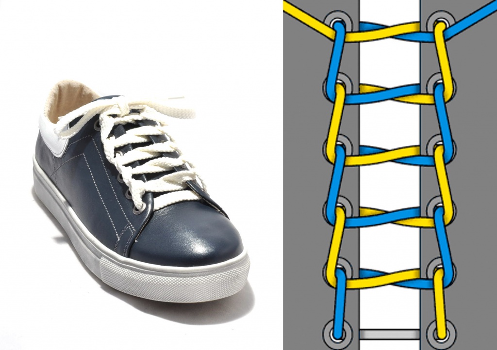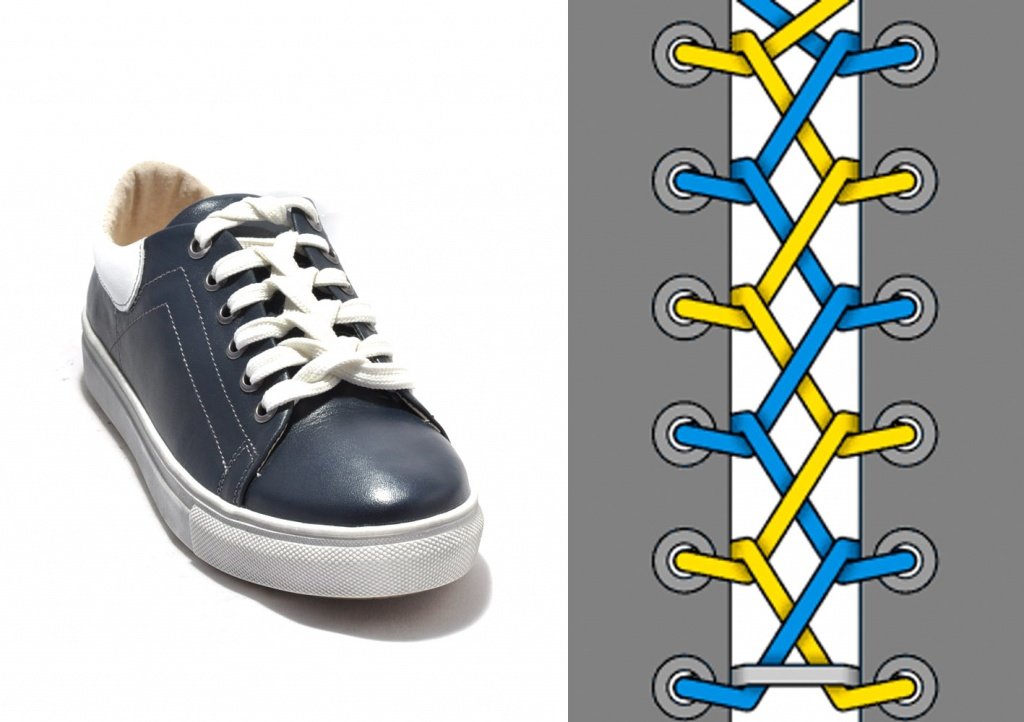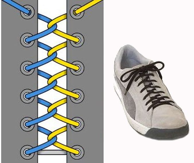 Помимо этого, нужно учитывать и сложность плетения. В одних случаях нужна простая техника, чтобы можно было быстро обуться и разуться. Для привлечения внимания или сильной фиксации кроссовок — трудоемкая. Изменив способ завязывания шнурков, можно подкорректировать размер обуви, откорректировав посадку по полноте и подъему.