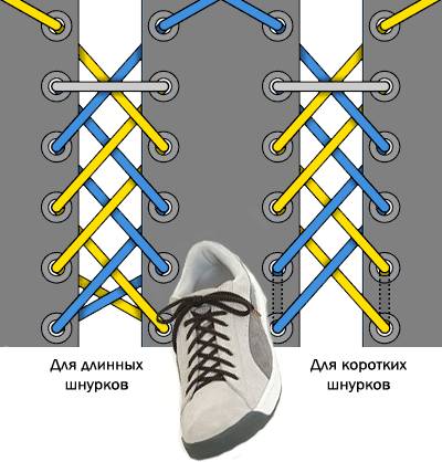 Кроссовки различаются по количеству люверсов, что влияет на выбор шнуровки. Некоторые методы универсальны, другие подходят только для определенного количества отверстий: