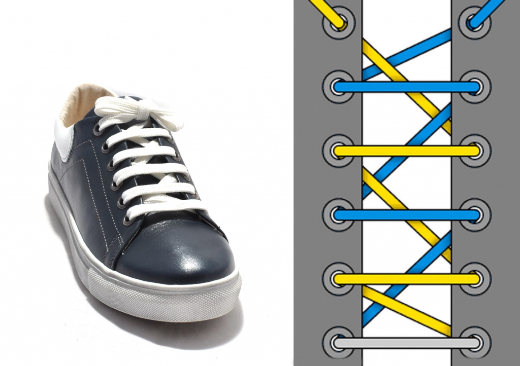 Шнуровка «Крест-накрест»: Это классический и самый распространенный способ шнуровки, который обеспечивает равномерное распределение давления на стопу. Для выполнения: