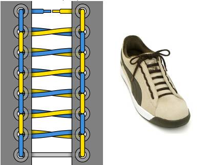 Наиболее предпочтительными вариантами шнурования в зависимости от типа обуви являются:
