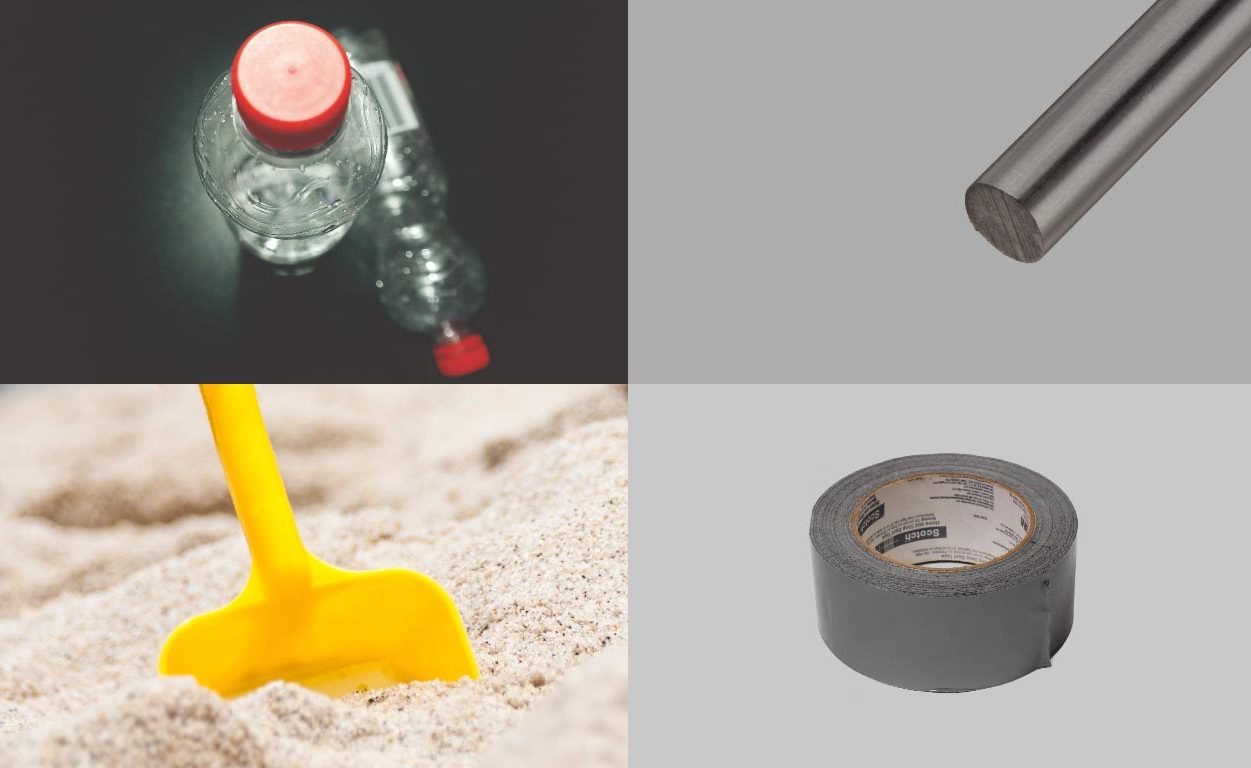 - Гантели собираются из двух бутылок с крышками, скотча, клея, песка, трубки. Последняя по размеру должна соответствовать удобному хвату рукой. Обе крышки прикручиваются к концам трубки. Чтобы их закрепить, применяется саморез. Крышки должны располагаться резьбой наружу. В середине бутылок вырезается отверстие. Затем используются только дно и горлышко. Дно следует поместить в верхнюю часть бутылки, так получится своеобразная колба. Со второй емкостью выполняются аналогичные действия. Срез колбы обрабатывается клеем и закрепляется скотчем для предотвращения просачивания наполнителя. В конце засыпается песок, а горлышки прикручиваются к крышкам с обеих сторон.
