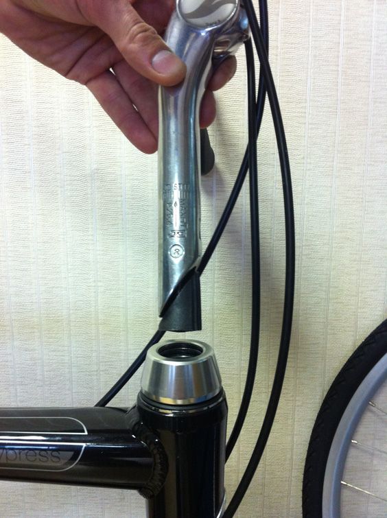 - Штырь устанавливается в раму вертикально относительно поверхности, на которой стоит велосипед;