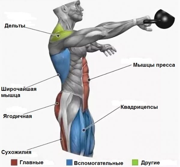 Эта тренировка относится к комплексным. Соответственно, спортсмен прорабатывает разные части тела. Какие мышцы работают во время рывка: