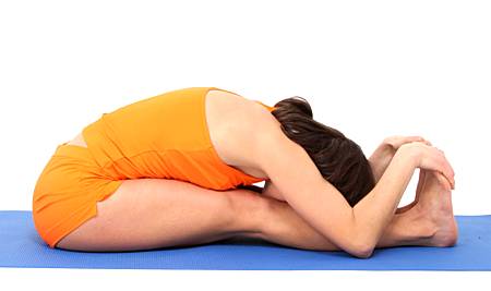 Тут все просто. Садимся на пол, вытянув ноги. Руками обхватываем ноги под коленками и начинаем тянуться вперед, стараясь достать головой коленей. Движения плавные, никаких рывков и дерганий. На выдохе плавно пускаемся как можно ниже, на вдохе- подымаемся.