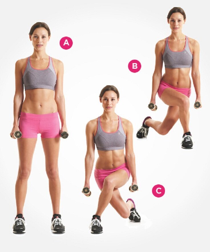 Приседания «ножницы». Подходят для мужчин и женщин, иногда называются «выпады на месте». Прорабатывают переднюю и внутреннюю поверхность бедер. Исходное положение — стоя, одна нога впереди, другая сзади, руки опущены. Приседайте, согнув ноги в коленях, бедро передней ноги и голень задней должны быть параллельны полу.