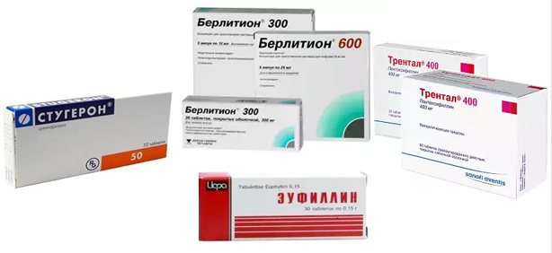 - Трентал, который выписывается при ухудшении концентрации внимания, при появлении головной боли;