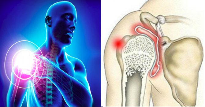 В воспаленном плечевом суставе появляются боли, ограничивается подвижность, слышны щелчки при движении и также повышается температура. Размеры припухлости в зоне воспаления очень заметны и могут достигать 10 см.