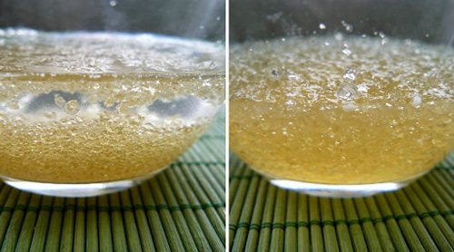 - В 100 мл кипяченой воды развести 1 ч. л. желатина.