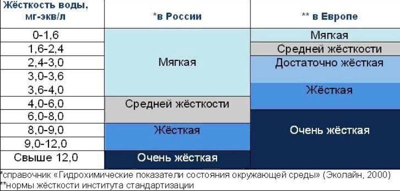 Жесткость измеряется в миллиграммах на литр (мг/л). Мягкая, слабоминерализованная вода, содержит от 50 до 100 мг/л. Эта вода, конечно, хороша для работы бытовой техники, но не очень полезна для организма человека. Потому что в организм с водой должны поступать соли кальция, магния и проч.