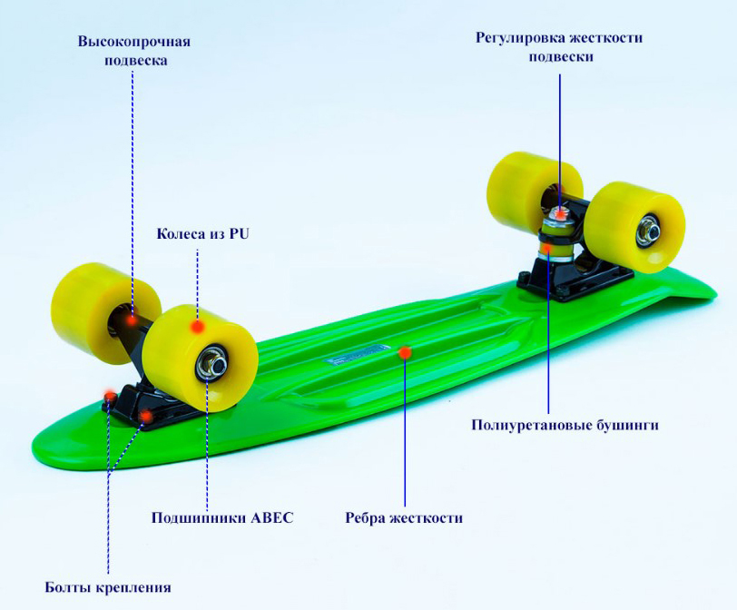Пенни борды популярны среди любителей катания на досках. Их название связано с небольшими размерами, что делает их удобными для передвижения по городским паркам. Круизные лонгборды подходят как детям, так и девушкам. В их конструкции выделяются следующие элементы: