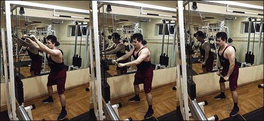 - Вариант 2: Пуловер на верхнем блоке можно использовать для предварительного утомления рабочей группы, то есть в финале тренировки спинной мускулатуры.