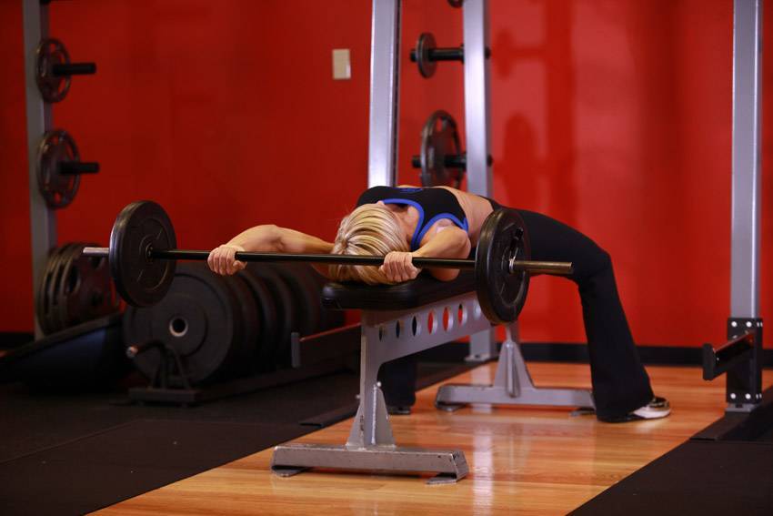 Упражнение пуловер со штангой в положении лежа с поддержкой спины