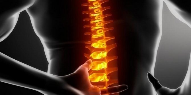 - Болевой синдром в области спины, имеющий свойство распространяться на весь позвоночник.
