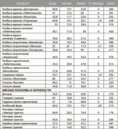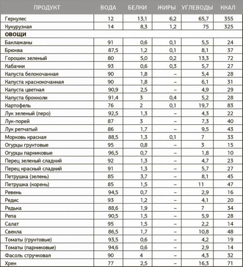 Для того, чтобы самостоятельно составить рацион питания можно воспользоваться специальными таблицами калорийности продуктов.