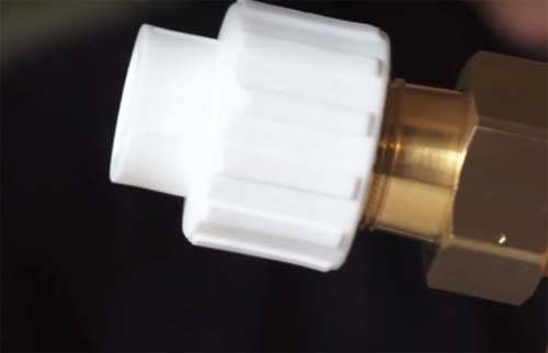 Для монтажа полипропиленовыми трубами используется специальный переходник, который обычно идет в комплекте |
