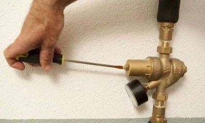 Самостоятельная настройка выходного давления, нужна не всегда, новые приборы имеют заводскую настройку, значения которой указаны в техническом паспорте. Но, если произвести настройку на другое значение всё-таки нужно, то регулировка производится при минимальном расходе воды. Перед этим нужно стравить воздух, пропустив воду из всех кранов. После, закрываем все водоразборные краны, кроме одного, открытого на величину при которой изливается струйка уже не разделённая на капли. Конечно, не обойтись без манометра. Прибор при отсутствии патрубка на корпусе регулятора, монтируется с помощью тройника, после редуктора.