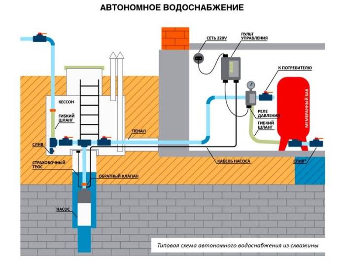 Очень многое в системе водоснабжения частного дома зависит от подачи. Чаще всего дома подключены к централизованной системе. В этом случае установка регулятора ничем не отличается от предыдущего варианта. Если же на придомовой территории расположена скважина, откуда осуществляется водозабор, необходима установка автоматического устройства, которое располагается непосредственно на двигателе насоса или вблизи него.