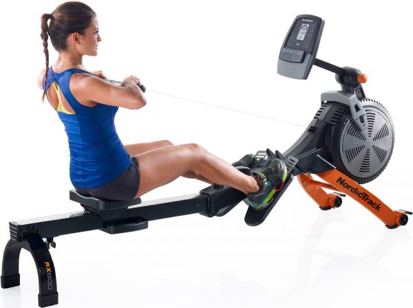 NordicTrack RX800. Гребной тренажер с центральной тягой, складывающийся для удобства хранения. Предлагает 5 уровней нагрузки, упоры для ног и сиденье настраиваются под рост пользователя. В памяти 20 программ для тренировок, встроенный динамик для музыки.