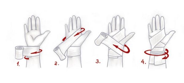 Важно знать не только то, зачем нужен эластичный бинт при растяжении запястья, но и технику правильного накладывания. Состоит она из нескольких этапов:
