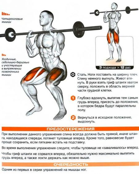 Новичкам следует начинать с пустого грифа. Дополнительные веса добавляйте только после освоения техники. Не выполняйте упражнение при болях в пояснице — сначала укрепите мышцы. Если возникает дискомфорт в коленях, обмотайте их эластичным бинтом.
