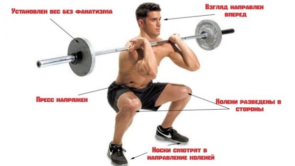 - Неправильная осанка. Важно держать корпус в вертикальном положении. Запрещено округлять спину, опускать локти. Ни в коем случае нельзя переносить вес с пяток на носочки — штанга упадет.