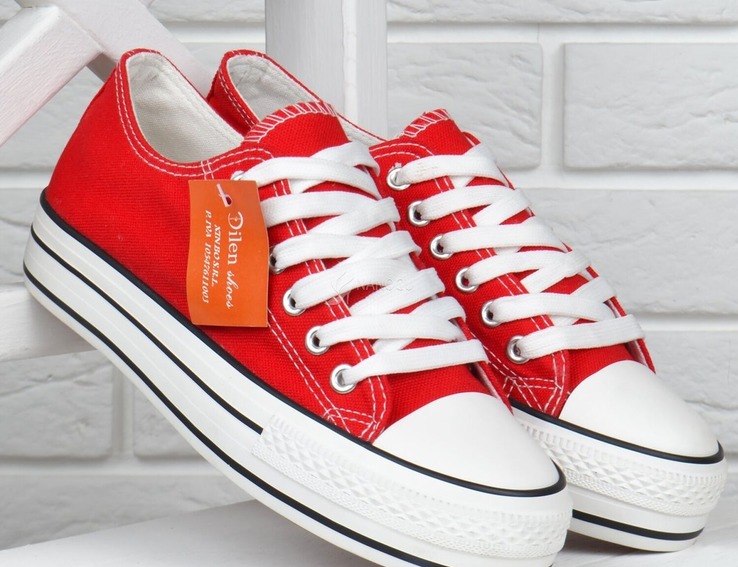 Молодые женщины создают стильные образы с женскими красными кедами. Обувь на низком каблуке позволяет модницам оставаться элегантными и привлекательными.