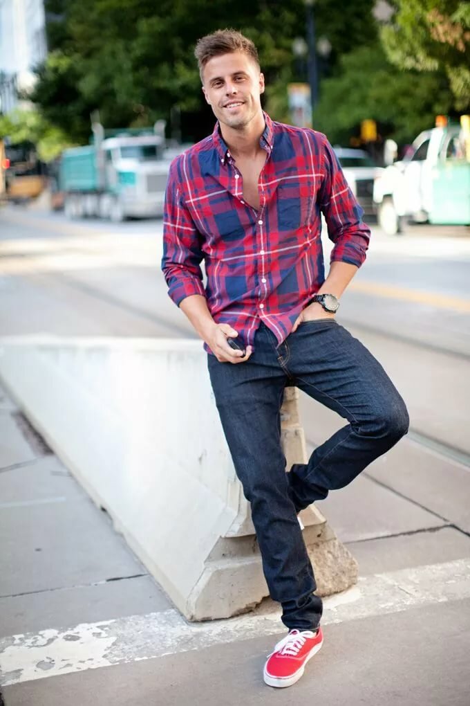 Мужчинам проще всего составлять стильные луки с красными кедами. Большинство вещей вполне уместно смотрится с яркой обувью: повседневные комплекты, спортивные костюмы и даже некоторые классические предметы одежды. Молодым парням можно комбинировать модели по-разному: