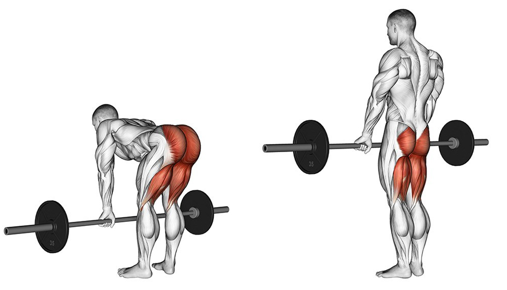 | Румынская тяга (РМТ) | Наклон туловища вперед незначительный, колени слегка согнуты, акцент на бицепсы бедра. | Гиперэкстензии, становая тяга с прямыми ногами |