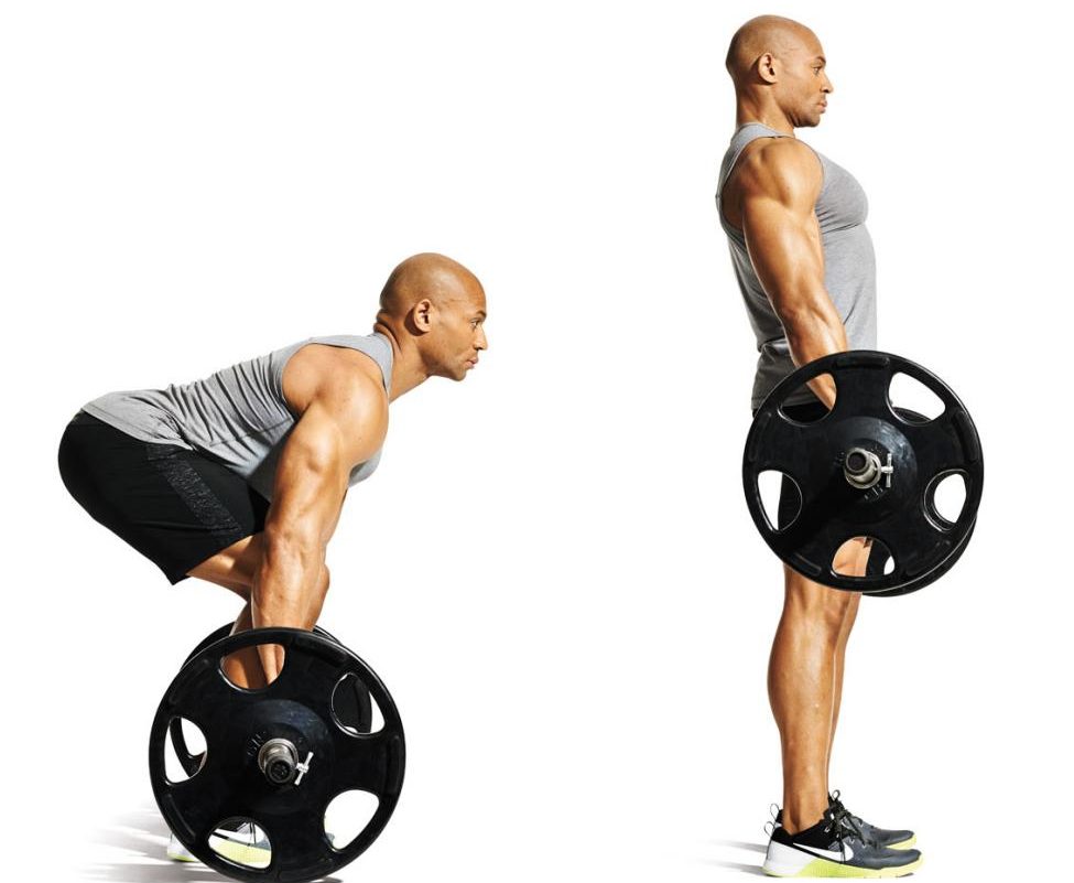 В классическом исполнении мертвая тяга со штангой позволяет развить мышечные ткани спины. Выполняется упражнение на согнутых, но совсем незначительно, ногах. Придерживаться нужно следующей схемы: