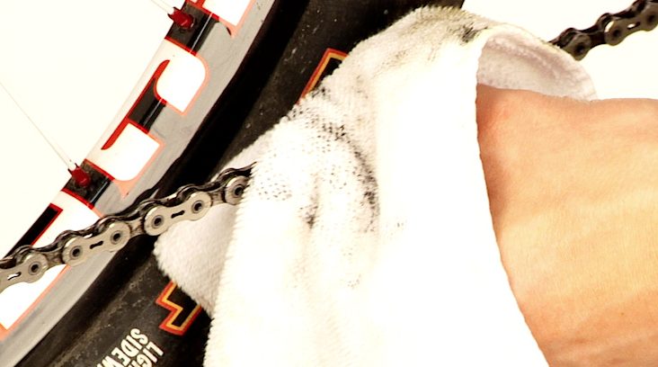 Цепь нового велосипеда обрабатывается густой смазкой, которой хватает на 300–400 км пробега. После этого удалить загрязненное вещество с металла будет сложно. Поскольку снаружи эта смазка не нужна (пыль и грязь превращают ее в абразивную пасту), перед первым использованием велосипеда рекомендуется протереть липкое вещество мягкой тканью, смоченной растворителем.
