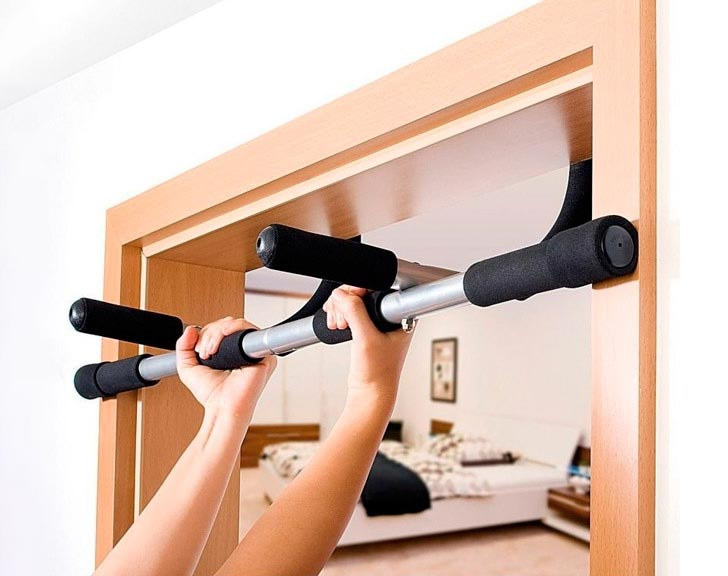 С перекладиной, установленной в дверном проеме, можно всегда поддерживать собственное тело в хорошей форме. В список доступных упражнений входят:
