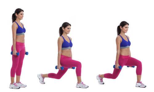 Если вы не можете это сделать из-за проблем с коленями, то попробуйте тоже самое в обратном направлении (выпады назад). Многие атлеты предпочитают выполнять это упражнение со штангой, потому что это позволяет тренироваться с большим весом, но выпады с гантелями могут также давать отличные результаты, плюс значительно снижается нагрузка на позвоночник.