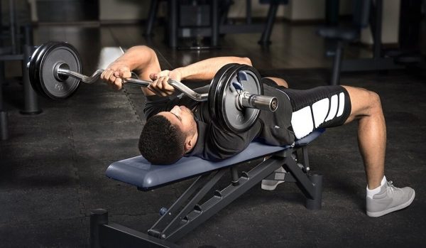 Французский жим — основное упражнение для тренировки трицепсов. Его можно выполнять лежа, стоя или сидя, используя прямой или изогнутый гриф.