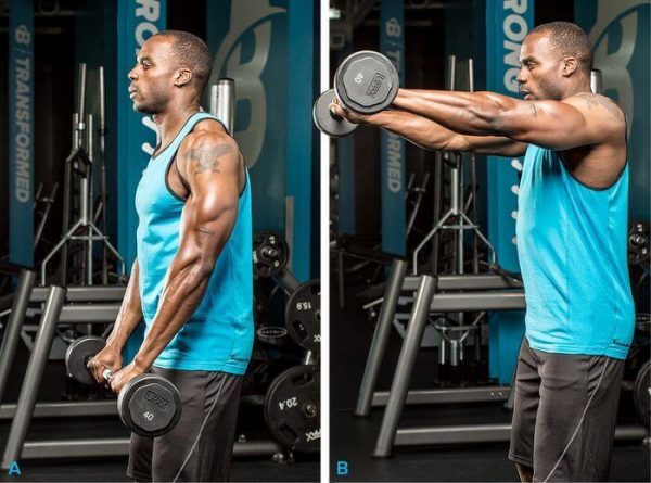 Фронтальные подъемы можно выполнять широким и узким хватом. В первом случае нагружается боковой пучок дельт, во втором — передний. Подъем грифа выше уровня плеч нагружает задние дельты.
