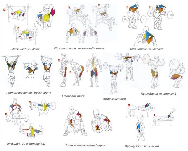 Базовыми упражнениями со штангой необходимо начинать прокачку группы мышц. Чтобы сделать это качественно, необходимо дополнительно включать в схему упражнения с гантелями. Перед каждой тренировкой необходимо привести свой организм в тонус — выполнить, например, упражнения на пресс.