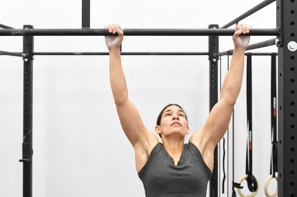 Из правильного виса подтяните тело на руках вверх до тех пор, пока подбородок не будет выше перекладины. Держите мышцы спины: лопатки должны быть сведены, грудь выдвинута немного вперед. Выполняйте подъем плавно, без рывков, старайтесь не раскачиваться. Подъем осуществляется в строго вертикальном положении.