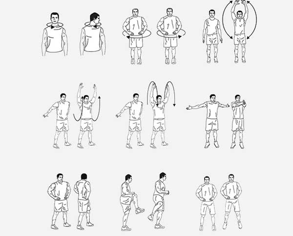 Разработанную методику начинать нужно с разминки продолжительностью около 10 минут. Движения легкие, направлены на разогрев мышечной ткани и суставов к дальнейшему безболезненному проведению ЛФК: