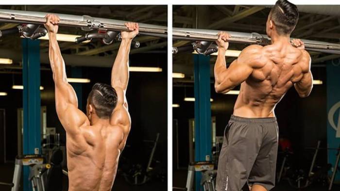 Для выполнения этого варианта подтягиваний следует взяться шире плеч.