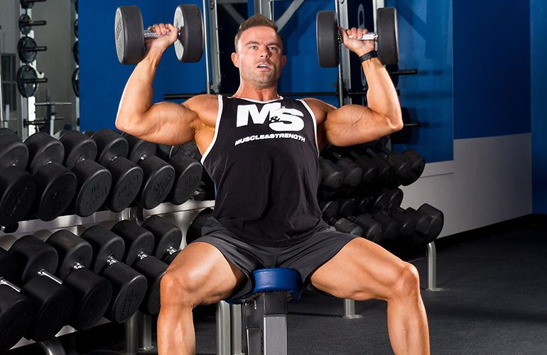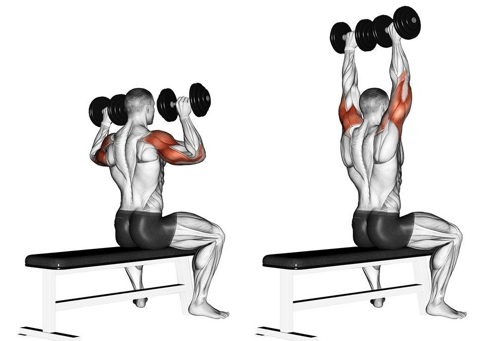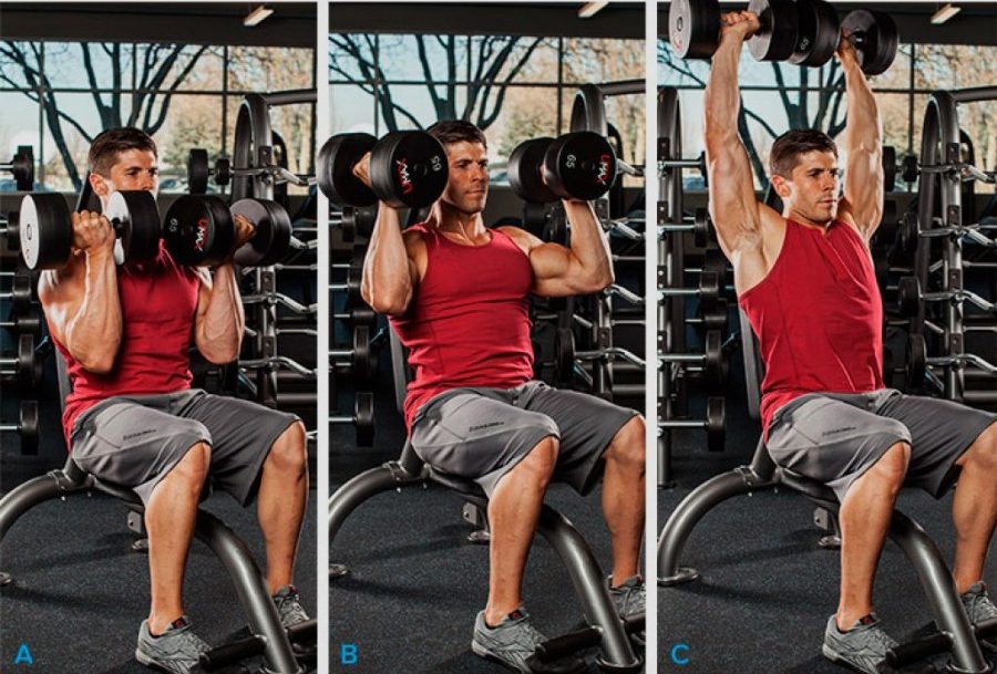 1. Жим гантелей сидя с опорой на спинку скамьи