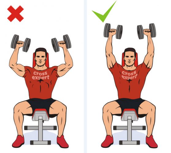 | Способ выполнения жима гантелей сидя | Распространенные ошибки | Рекомендации по исправлению |