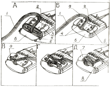 - Пучок строп специальным крючком протягивают в соты на дне ранца, оставшуюся часть — поверх них.