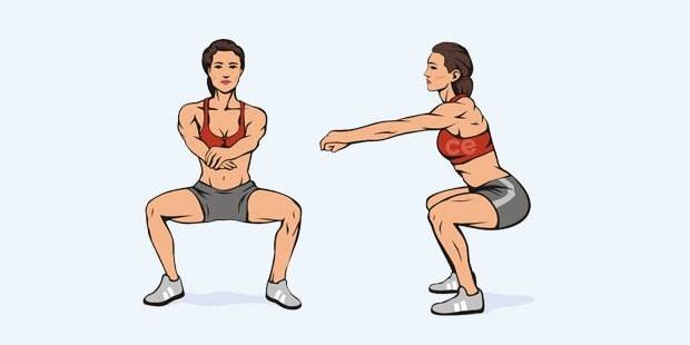 На первый взгляд техника выполнения воздушных приседаний выглядит совсем просто