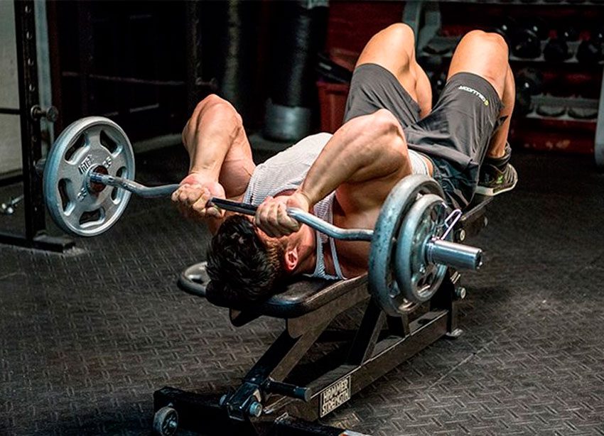 - Сосредоточиться на полном диапазоне движения, опуская штангу или гантели до уровня лба или чуть ниже.