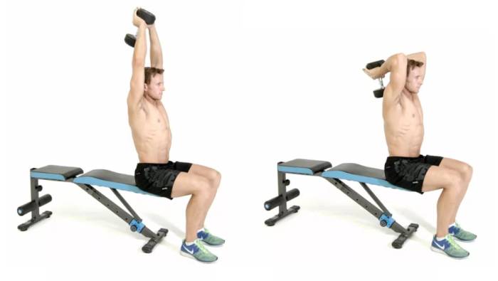 - Немного отведите руки назад к голове, чтобы растянуть внутреннюю головку трицепса и задействовать всю трехглавую мышцу даже при небольшом весе.