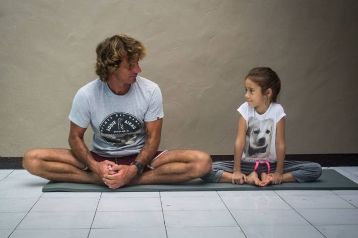 - сесть на коврик для йоги, расположенный на ровной горизонтальной поверхности;