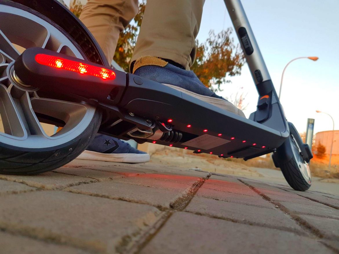 На нижней стороне деки расположена светодиодная подсветка, цвет которой можно настроить через приложение. Подсветка также есть на дропаутах, где крепится заднее колесо. При включении фары она автоматически активируется как габариты, а при торможении начинает мигать. На крыле установлена светоотражающая наклейка. Оба колеса защищены крыльями, заднее также служит ножным тормозом, помимо основного на руле. Устройство имеет систему блокировки от угона.