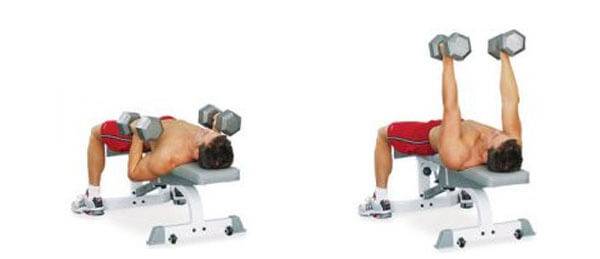 Во время жима гантелей на прямой скамье в работу вовлекаются:
