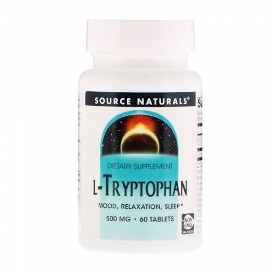 - Now Foods – продукт американской фирмы L-Tryptophan содержит по 500 мг вещества в каждой капсуле. Одна порция содержит 2 капсулы, то есть 1 г триптофана. Принимается по 1-2 капсулы 2-3 раза в день. Всего продукт содержит 120 капсул.