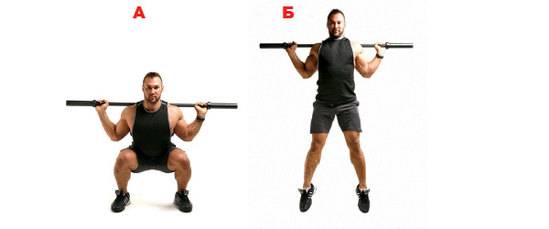 - приседания со штангой на тумбу (акцент делается на медленное опускание и взрывное вставание)